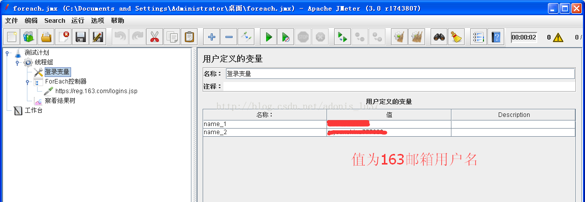 ForEach控制器在用户自定义变量中读取一系列相关的变量。该控制器下的采样器或控制器都会被执行一次或多次,每次读取不同的变量值。所以ForEach总是和User Defined Variables一起使用。