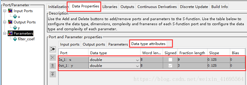 Data Properities页面上设置输入输出端口属性及参数属性,如下所示:
