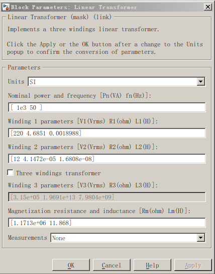 最近,用simulink建模时,要用到变压器。找到了linear transformer,但看到设置参数后,傻眼了。后来网上找了一下,也没有特别令我满意的答复,经过查看资料,汲取各家的观点,现整理出来,便于查看。