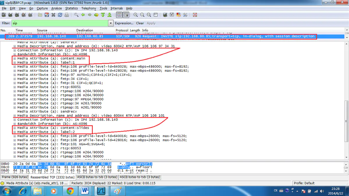 (2)SDP中对于视频通道能力多了一个content及label描述项,如下图所示: