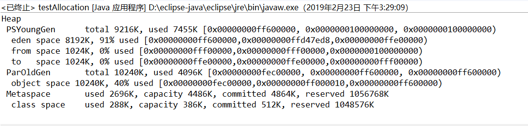 //allocation4=new byte[4*_1MB]; //将出现Minor GC