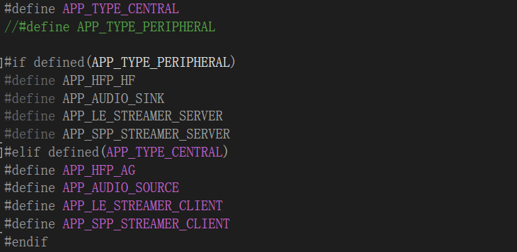 由于是做发射,这里只初始化了接收部分,涉及的应用应用程序为a2dp_source,hfp_ag,spp_client,le_streamer_client,相关接口我已经做了封装,并汇集到app.c中,请自行查阅。