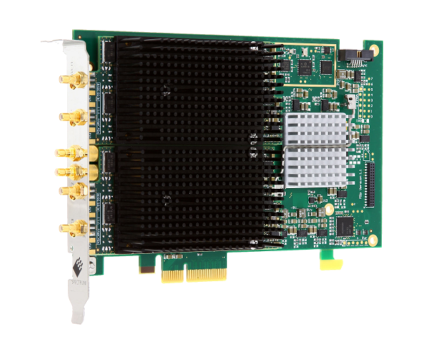 AWG安装到PC中,就可以轻松与其他测试和测量设备集成。信号输出以及时钟和触发输入通过前面板SMB连接器提供。前面板还包含四个MMCX连接器(一个多功能输出和三个多功能I/O线),可用于不同的任务,如数字输出通道,时钟,触发或状态输出以及异步I/O线。这种高水平的连接性使AWG卡可以轻松地应大多数自动化测试系统环境。