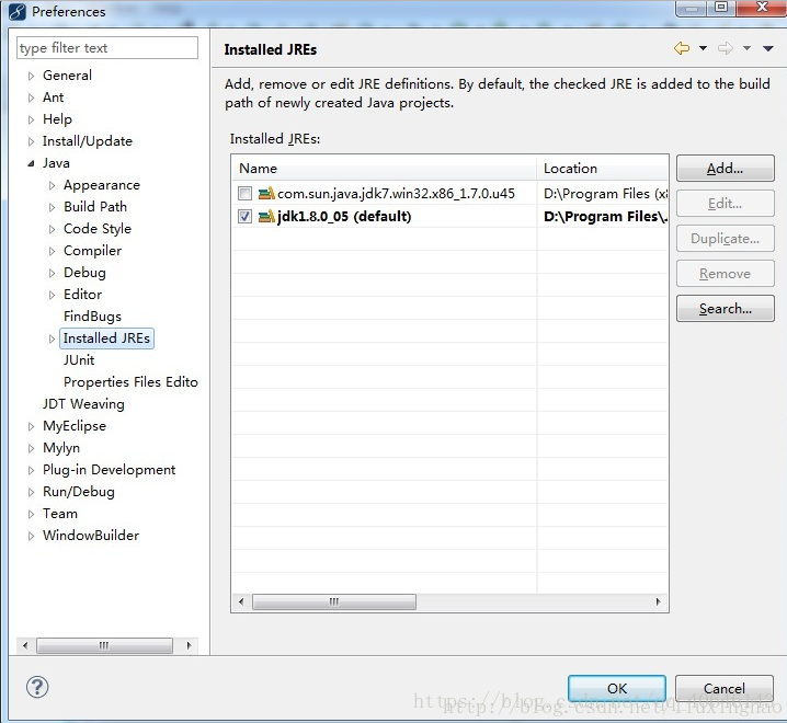 1、首先在Eclipse中安装JRE,Preferences > Java > Installed JREs,点击 Add,并添加自己的Java路径。