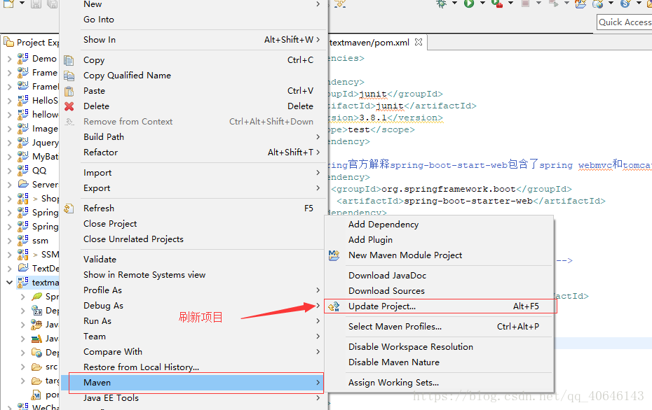 最后一步,右键项目 > Maven > Update Project。