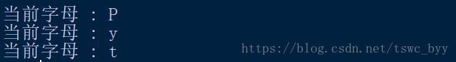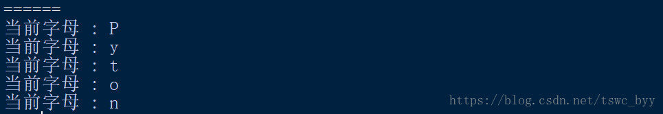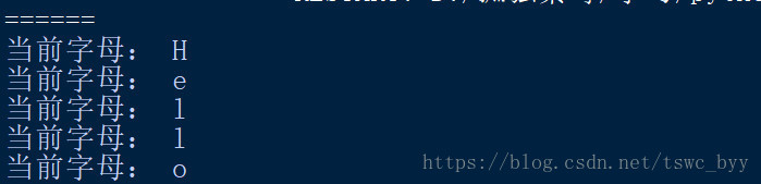 print("当前字母:",letter)