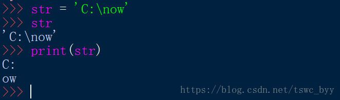 >>>str = ‘C:\now’