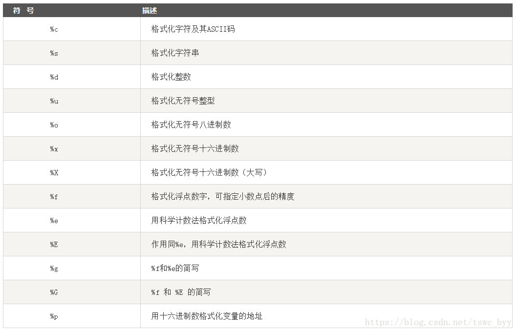 python字符串格式化符号: