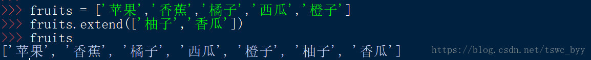 向列表添加元素 append( )、extend( )、insert( ):