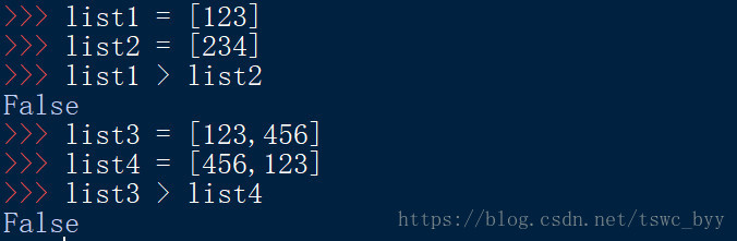 比较操作符(列表中有多个元素只比较第一个)