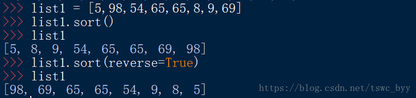 用于对原列表进行排序,如果指定参数,则使用比较函数指定的比较函数。