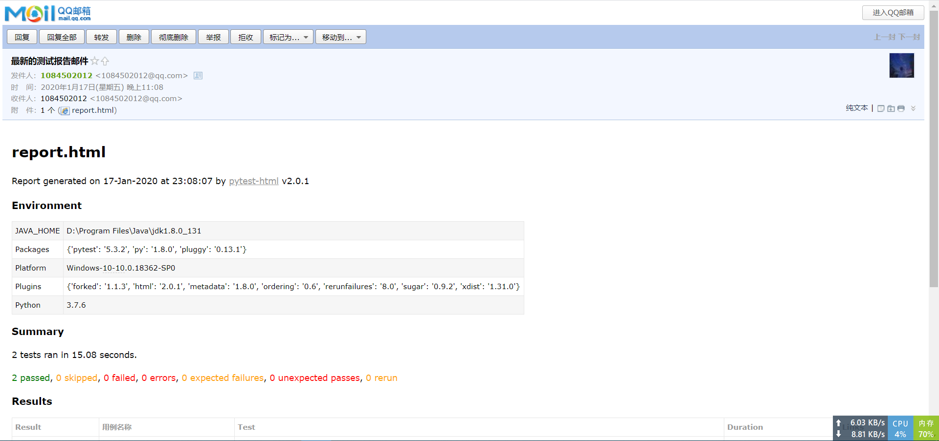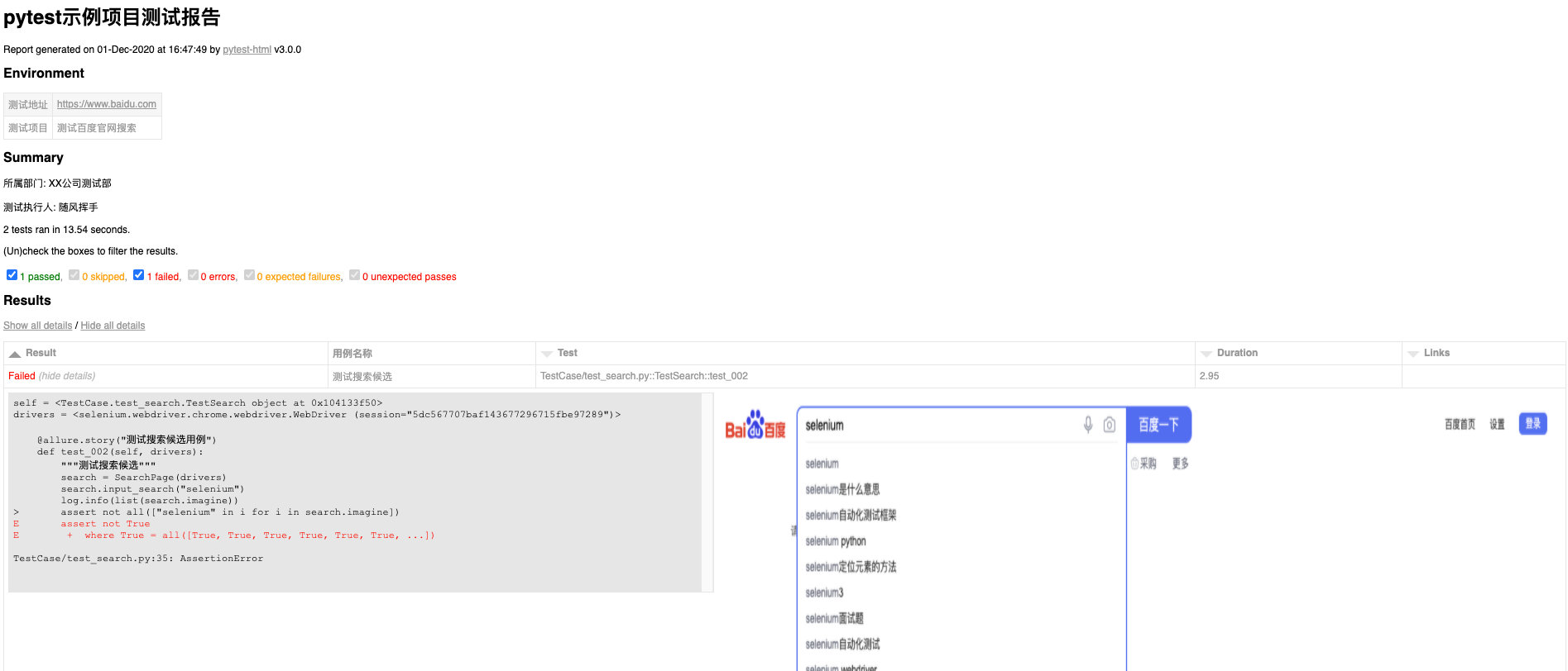 再来看看pytest-html中生成的报告: