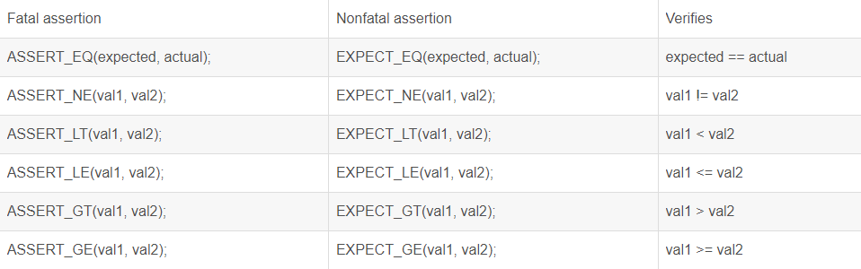 在对输出结果进行检查(check)时,Gtest为我提供了一系列的断言(assertion)来进行代码测试,这些宏有点类似于函数调用。当断言失败时Gtest将会打印出assertion时的源文件和出错行的位置以及附加的失败信息。这些输出的附加信息用户可以直接通过“<<”在这些断言宏后面。