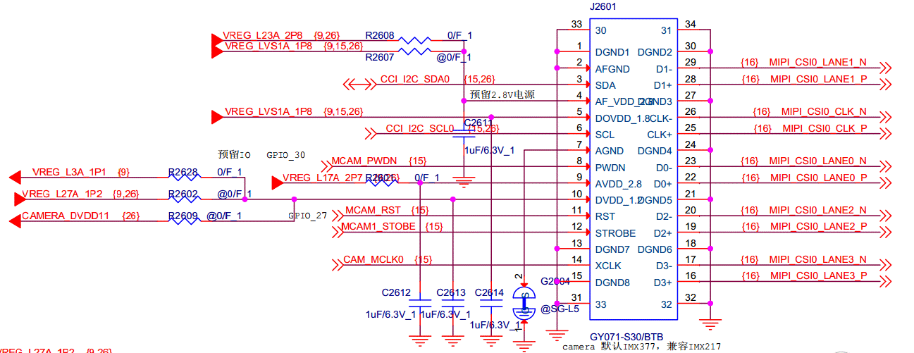 (2)对照原理图和camera datasheet,检查camera module 的pin脚连接是否正确。