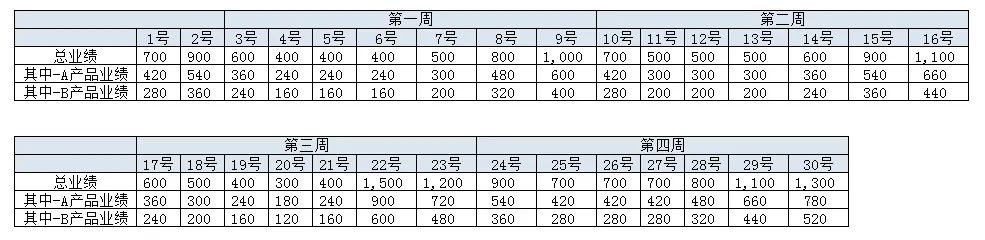 这里只有一个指标:业绩,但是有3个分类维度:周、日、产品。很多新人会脱口而出:两个分类维度,时间和产品。