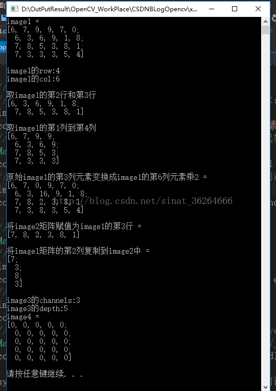 以上就是贪玩铃铛最近收集整理的关于【拜小白opencv】13-Mat类中几种常用函数用法;行、列显示等 代码演示 显示结果程序说明的全部内容,更多相关【拜小白opencv】13-Mat类中几种常用函数用法;行、列显示等内容请搜索靠谱客的其他文章。