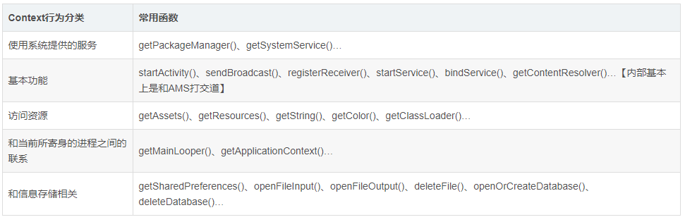 Context体现到代码上来说,是个抽象类,其实调用的是 ContextImpl,其主要方法如下: