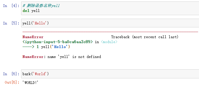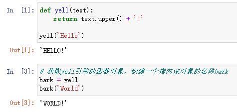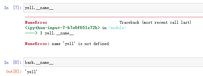 虽然函数的“__name__”是yell,但是已经无法使用这个名称在代码中访问函数对象了,名称标识符仅仅用来辅助调试,指向函数的变量和函数本身实际上是彼此独立的。