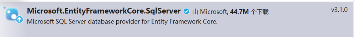 2、搜索包,如Microsoft.EntityFrameworkCore.SqlServer