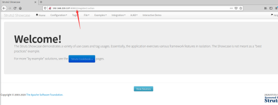 启动环境后,访问http://your-ip: 8080/show/,您将看到Struts2测试页面。