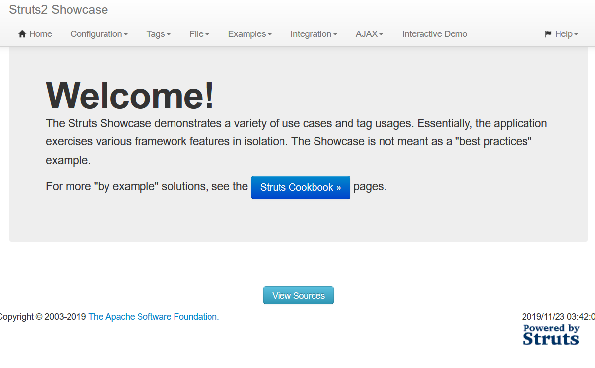 环境启动后,访问`http://your-ip:8080/showcase/`,将可以看到Struts2的测试页面。