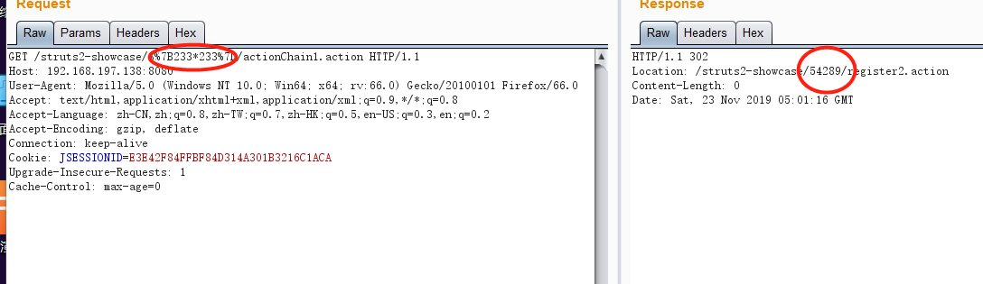 http://your-ip:8080/struts2-showcase/$%7B233*233%7D/actionChain1.action