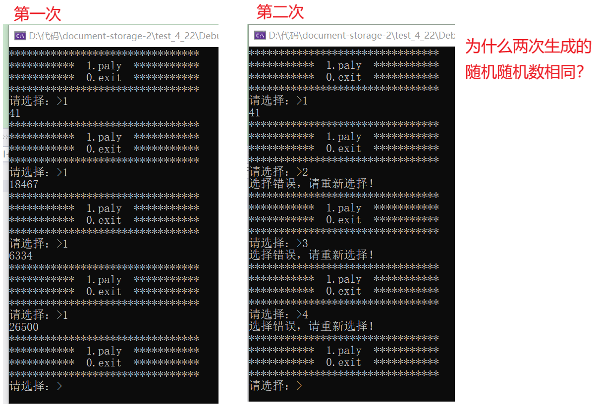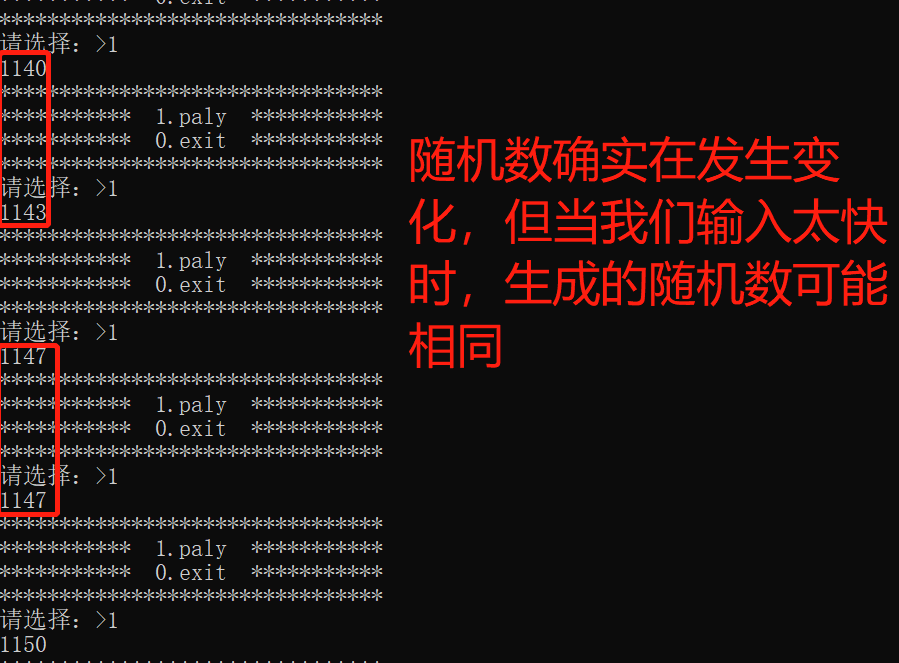 所以 srand((unsigned int)time(NULL)); 不应该放在game( )函数里,而是把它放在主函数里面。
