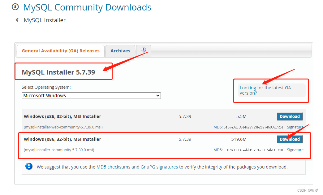 因为目前mysql官网只有32位的安装包,所以这里下载的是32位的,但是不用担心,这个32位安装包里是有62位和36位两种安装方式的。