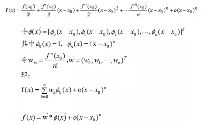 由泰勒公式和傅里叶级数可知,当基函数的数量足够多时,向量内积无限接近于函数值。线性回归的向量内积表达式如下: