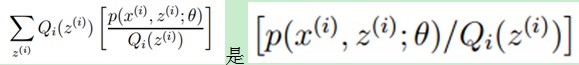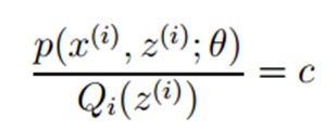 (因为Q是随机变量z(i)的概率密度函数),则可以得到:分子的和等于c(分子分母都对所有z(i)求和:多个等式分子分母相加不变,这个认为每个样例的两个概率比值都是c),则: