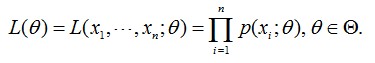 这个概率反映了,在概率密度函数的参数是θ时,得到X这组样本的概率。因为这里X是已知的,也就是说我抽取到的这100个人的身高可以测出来,也就是已知的了。而θ是未知了,则上面这个公式只有θ是未知数,所以它是θ的函数。这个函数放映的是在不同的参数θ取值下,取得当前这个样本集的可能性,因此称为参数θ相对于样本集X的似然函数(likehood function)。记为L(θ)。