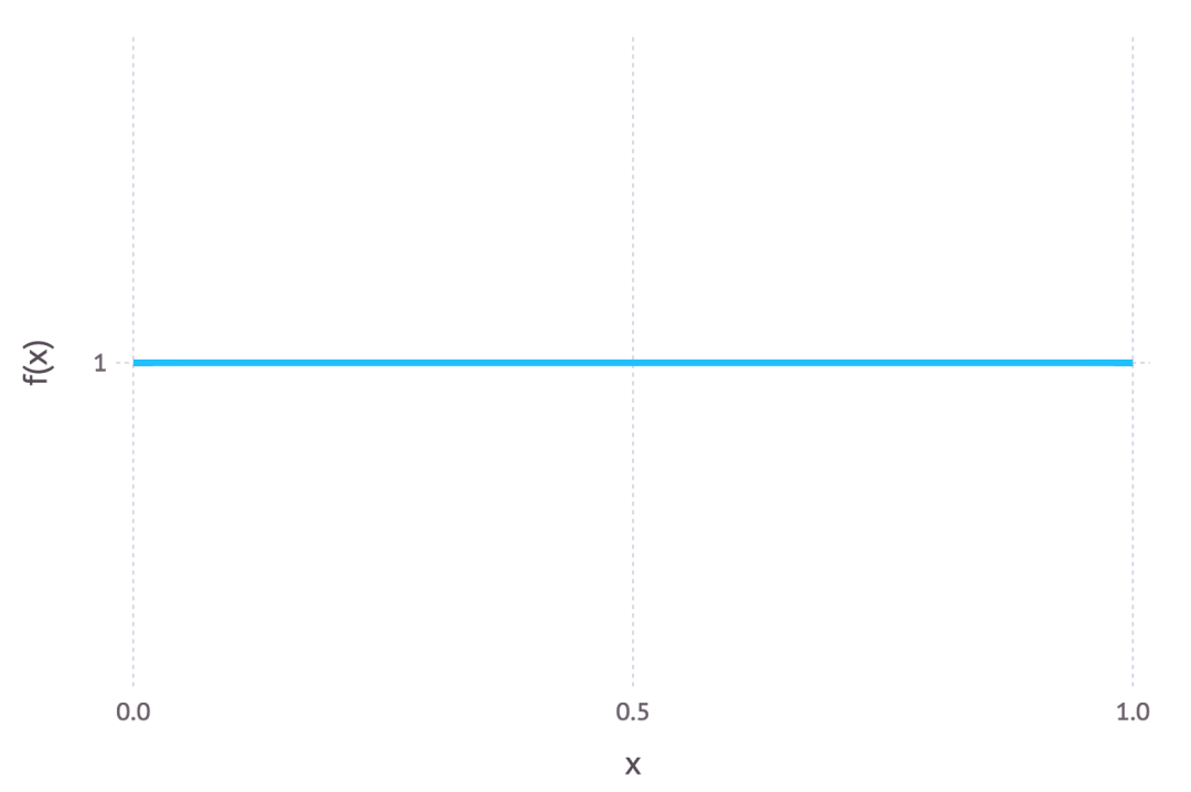当先验分布均匀之时,MAP 估计与 MLE 相等。下图是均匀分布的一个实例。