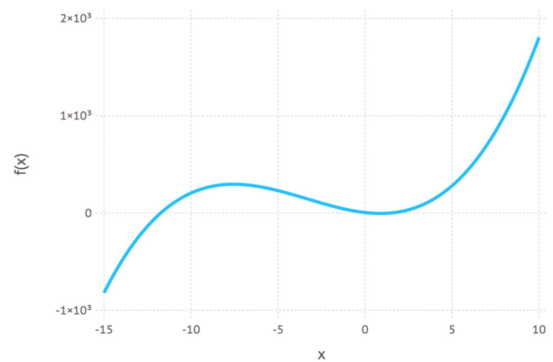 这是一个非单调函数的例子,因为从左至右 f(x) 会上升,然后下降,然后又上升。