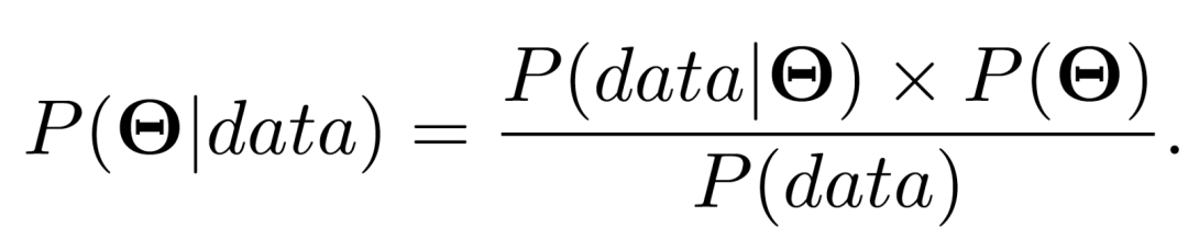 其中 P(Θ) 是先验分布,它代表了我们相信的参数值分布,和上述例子中代表卖出冰淇淋的概率分布类似。等式左边的 P(Θ|data) 称为后验分布,它代表利用观察数据计算了等式右边之后的参数值分布。而 P(data| Θ) 和似然度分布类似。