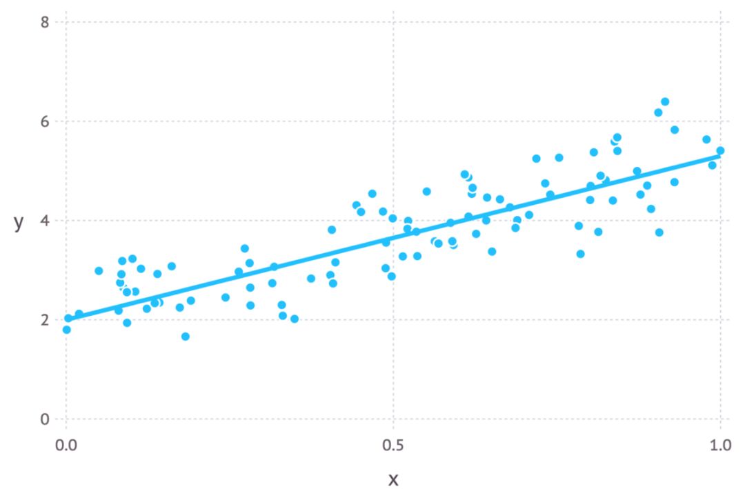 直觉上,我们可以通过理解两种方法的目的来解释这两种方法之间的联系。对于最小二乘参数估计,我们想要找到最小化数据点和回归线之间距离平方之和的直线(见下图)。在最大似然估计中,我们想要最大化数据同时出现的总概率。当待求分布被假设为高斯分布时,最大概率会在数据点接近平均值时找到。由于高斯分布是对称的,这等价于最小化数据点与平均值之间的距离。