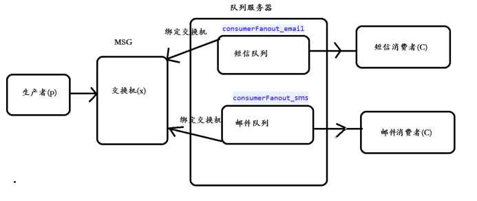 下面代码部分会展示邮件、短信的例子,通过绑定到一个交换机,但是
