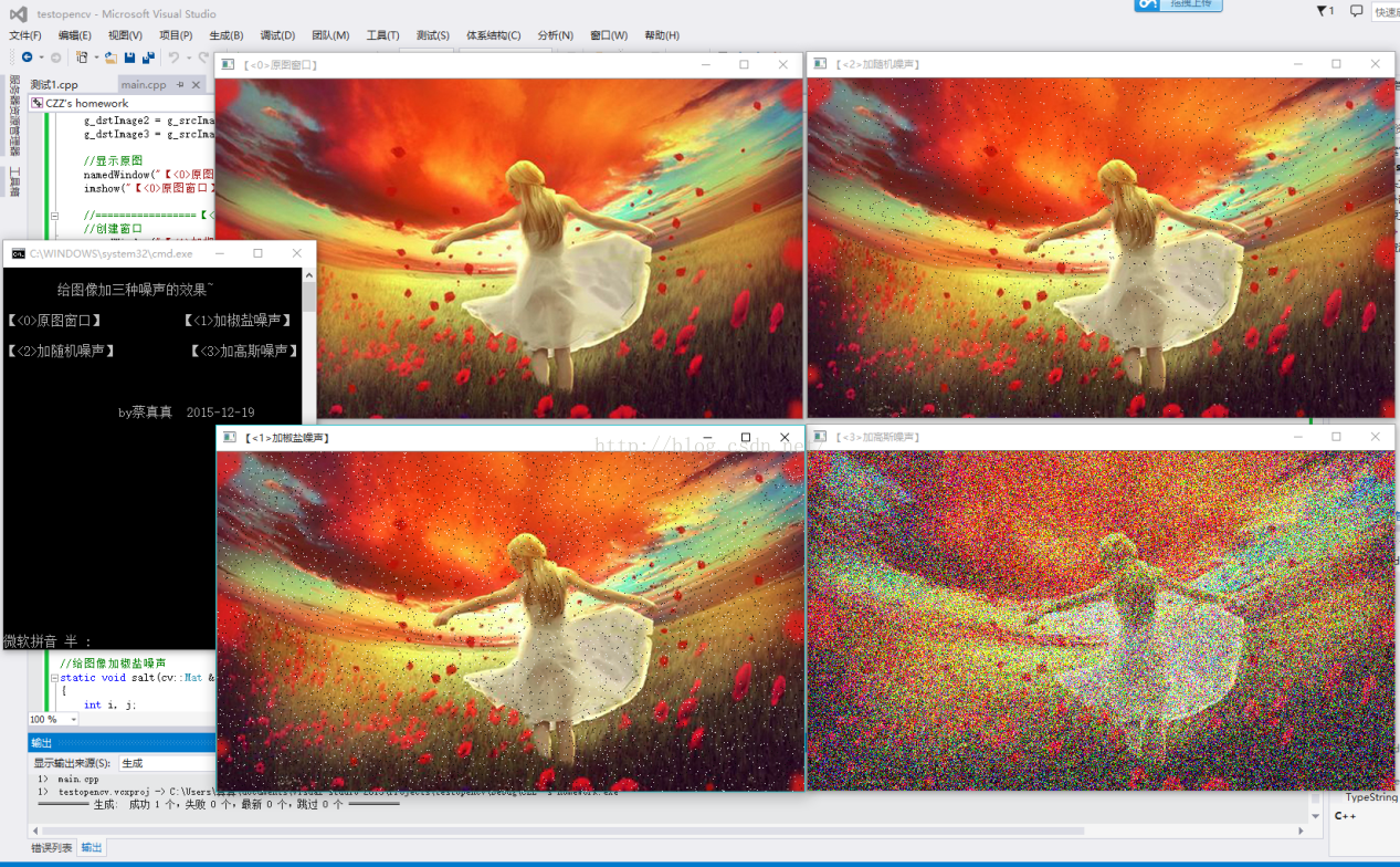 cout << endl << "t给图像加三种噪声的效果~nn"