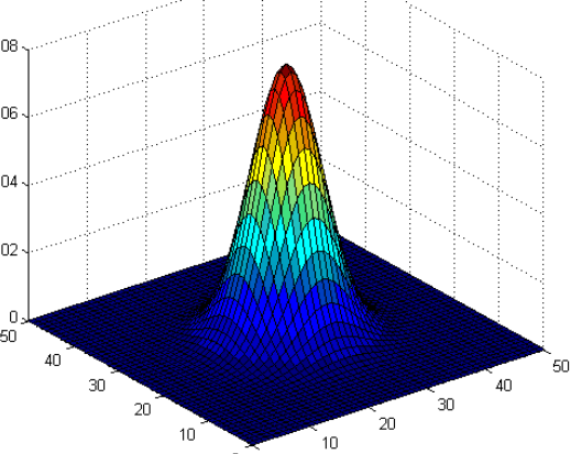 注意:这两种图的区别。2.1图是二维高斯分布的各采样点的分布,这些点是二维分布的高斯点,通过点的疏密才能看出分布概率的大小。2.2图是二维高斯分布点和点的概率分布图,通过高度就可以看出分布在各点的概率分布,但是这个图也是二维高斯分布的描述。所以说,符合SGM分布的二维点在平面上应该近似椭圆;相应地,三维点在空间中则近似于椭球状。这里说的点是采样点。