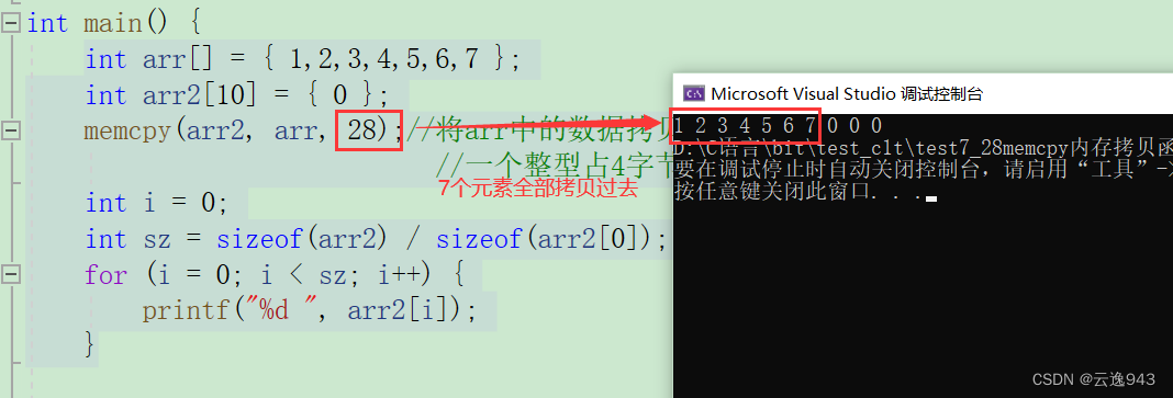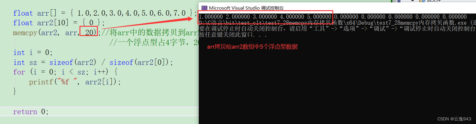 - 函数memcpy从source的位置开始向后复制num个字节的数据到destination的内存位置。
