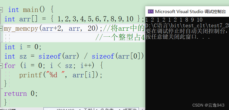 注:memcpy函数能够拷贝任何类型的数据都是源自于两个指针都是void*,void*按字面意思为:空类型指针,而深层意思是:泛型指针!