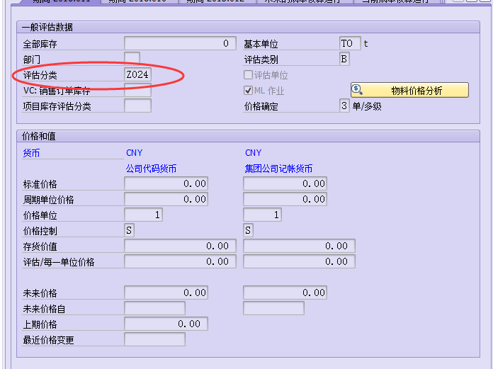 SAP 物料评估类未填写