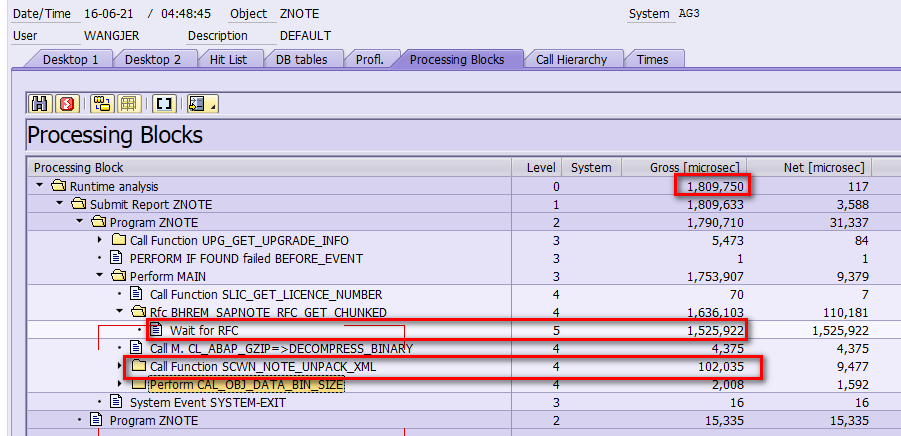 Of course SAT also enables to directly measure tcode SNOTE, however this approach is not efficient since lots of other stuff which I am not interested ( such as transaction processing, SAPGUI related handling etc ) are also measured and contained in SAT trace file.