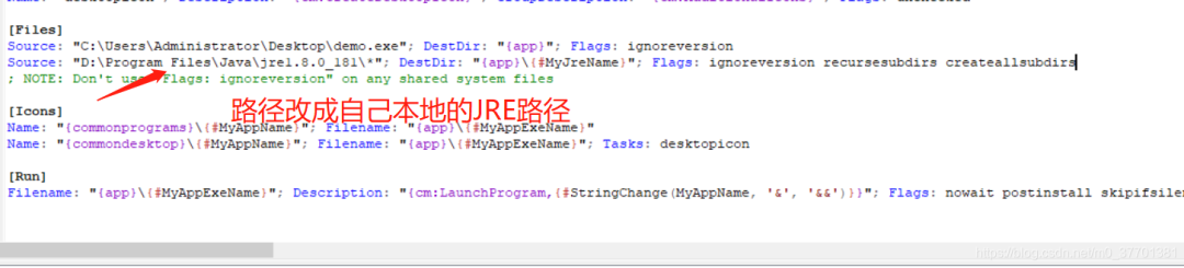Source: "自己本地JRE路径*"; DestDir: "{app}{#MyJreName}"; Flags: ignoreversion recursesubdirs createallsubdirs
