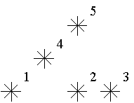 For example, look at the map shown on the figure above. Level of the star number 5 is equal to 3 (it's formed by three stars with a numbers 1, 2 and 4). And the levels of the stars numbered by 2 and 4 are 1. At this map there are only one star of the level 0, two stars of the level 1, one star of the level 2, and one star of the level 3.