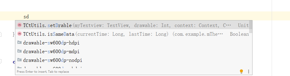 4.AndroidStudio智能识别更强大:智能识别在AndroidStudio中是一个非常大的亮点,在as里面,单独输入某一段的字母,很多识别都会出现,而且可以使用缩写,不过得么有错