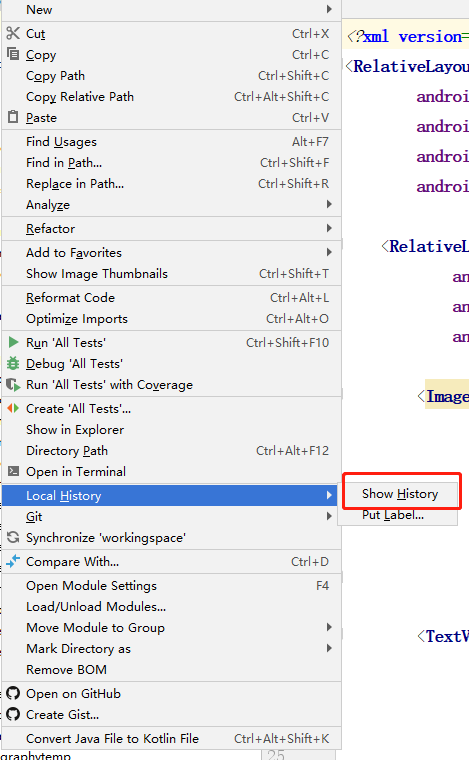 3.AndroidStudio编辑历史更详细:在工作台上修改代码、修改布局文件或者删除文件等,记录得非常细致,每一个操作都有记录,每一个操作都能够撤销。而Eclipse中删除文件后,之前的编辑记录就会被清空,及时你恢复文件你也会觉得傻眼的,之前那么多的操作如何回滚是一个问题。除非你使用了版本控制工具。