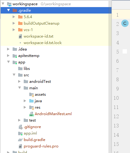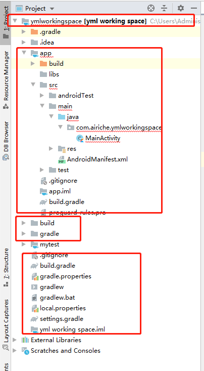 而as的项目就比较复杂,除掉mytest(这个是我的另一个项目),这个目录就是整个项目空间,它可以放置多个项目,我们再来看一下项目的文件详情: