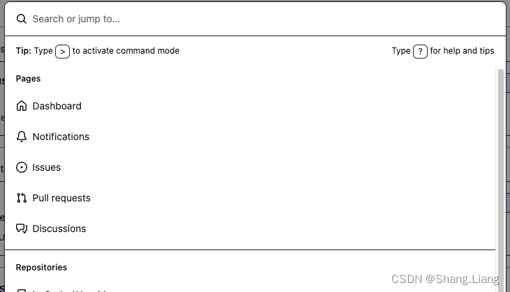 5. CTRL+K / Command + K ,GitHub 命令面板