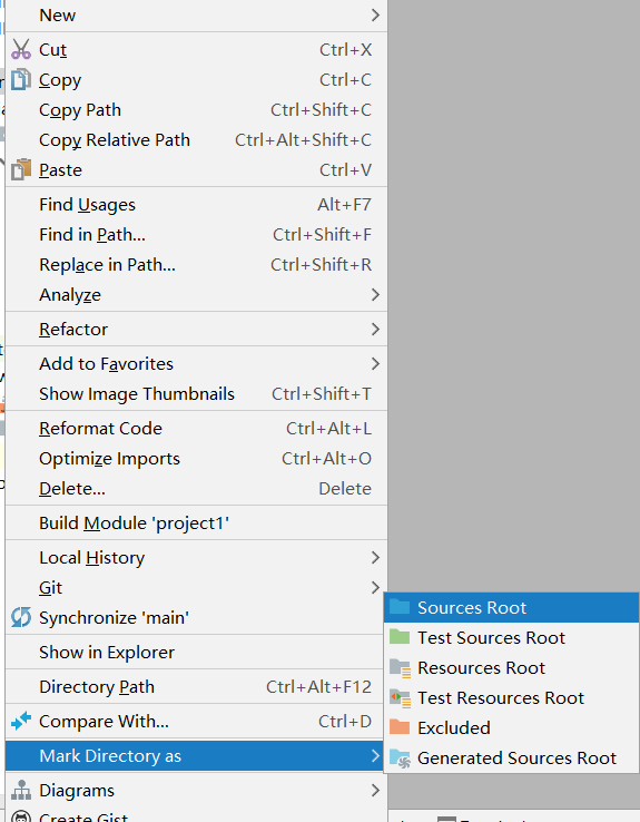 在src->main目录下新建java目录(New Directory)并标记此目录作为source的根目录